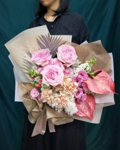 Tell us your desired colors or purpose of this gift, and our experienced floral designer will design a one-of-a-kind bouquet just for you. The pictures below showcase real bespoke arrangements we have crafted for our clients. Please whatsapp us for order (+852-92090192), or click here